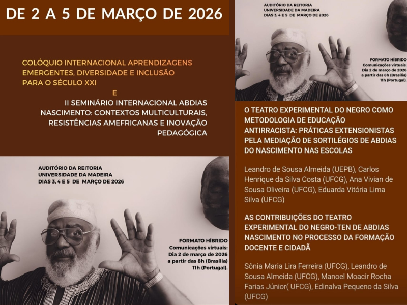 Pesquisadores do CDSA/UFCG têm dois trabalhos de extensão sobre o Teatro Experimental do Negro de Abdias do Nascimento aprovados evento na Universidade da Madeira